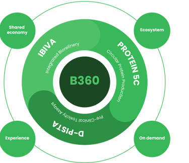 O B360 é o modelo de negócios da BISPORA Biotecnologia, que integra ciência, inovação e sustentabilidade em um ecossistema único. Conectando as plataformas IBIVA, PROTEIN 5C e PISTA, o B360 transforma biomassa em valor, acelera a pesquisa e promove a Saúde Única — ambiental, animal e humana. Um ciclo completo que une biotecnologia e impacto positivo para impulsionar a bioeconomia do futuro.